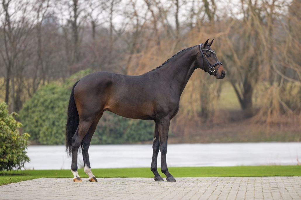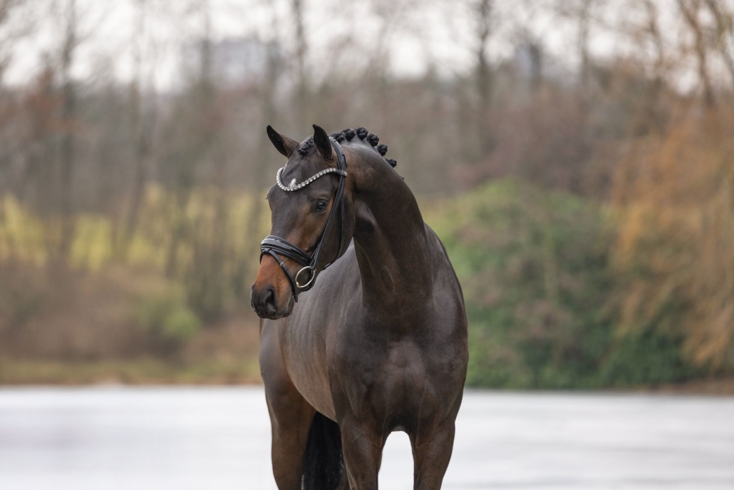 Adel en expressie maken deze jonge hengst Join Me tot een echte eyecatcher. Zodra hij zich in beweging zet, valt zijn prachtig door het lichaam vloeiende bewegingsmechanisme en zijn wil tot presteren direct op.