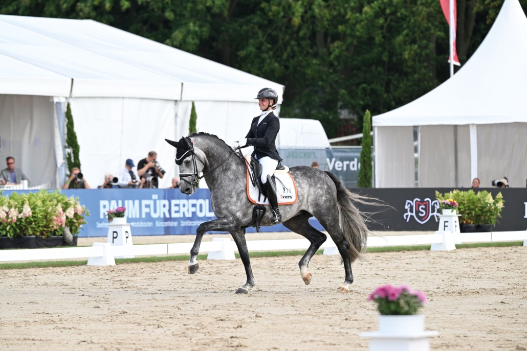 Met twee indrukwekkende ritten kroonde Proud James zich in 2025 in Verden tot onbetwiste wereldkampioen bij de vijfjarige dressuurpaarden. Al tijdens de kwalificatie betoverde deze beeldschone danser zowel jury als publiek (89,600%) en wist hij in de finale zichzelf nog te overtreffen. „De draf is zeer actief, zeer elastisch, goed in balans, met een goed swingende rug, goede versterkingen en een uitstekende verzameling,“ prees Maria Colliander namens de jury, die voor de draf een 9,3 toekende. Ook de ruime stap en de actieve, goed uitgebalanceerde bergopwaartse galoppade vielen de jury op, met scores van respectievelijk 8,3 en 9,0. De constante aanleuning, de swingende rug en de focus op zijn amazone Mette Sejbjerg Jensen leverden een losgelatenheids-score van 9,2 op. Voor het perspectief kreeg de zeer goed opgeleide, uiterst charmante schimmel een 9,5. Het eindresultaat van 90,60% betekende WK-goud voor Proud James, die een jaar eerder al onverslaanbaar was in de WK-competitie voor vierjarigen onder zijn toenmalige amazone Maxi Kira von Platen.